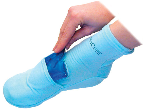 *Relieves pain from heel spurs plantar fasciitis toe problems more *Eases discomfort on bottom of foot top of foot and Achilles * Tendon * Soothes tired sore muscles strains and sprains* Place removable chilled or frozen gel packs where needed * Effective after injury or surgery * Fits Women's shoe size 8.5 and up; Men's 7.5 and up