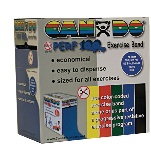 Latex free * 100-YARD PATIENT ROLLS * Red Light * Cando© band is used for rehabilitation conditioning and training * 5-inch wide * Cando© band is highly effective when used alone or with the handle and anchor accessories * All exercise bands are lightweight take up minimal room and are highly portable * There are 8 progressive levels of resistance to accommodate the lightest to heaviest requirements * Cando© is licensed to use the Thera-Band© color sequence so resistance level is easily identified * Perforations every 5 feet yielding 60 perfect-size pieces for all exercises * Easy to dispense; just pull and separate * Average lead time for shipping: 9 + days.SHIP TO : USA