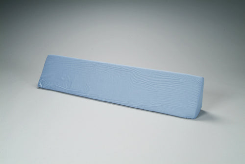 6 X 24 X 9 * Positioning Wedge 33 degrees w/cover * Maintains patient's position while reducing pressure in sensitive areas * Place along patients back when they are lying on their side * Can be placed at the small of the back when sitting in bed * 100% polyurethane foam * Features a fluid proof nylon Navy blue cover