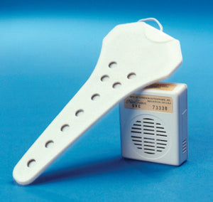 FEMALE ALARM WITH PADS * Compact moisture-sensitive training device for bedwetters * Small plastic alarm box attaches to shoulder area of the bedwetters pajama or t-shirt with velcro attachment close to the ear * Nonabsorbent anatomically designed sensor pad is worn over the genitals and held in place with a pair of snug fitting shorts or panties * Plastic box contains miniaturized electronic alarm and a 9V battery * Alarm box generates a highly alerting warbling sound assuring quicker response to the alarm by the bedwetter * Alarm box has built-in dual-volume control switch for high tone or low tone. Only alarm available with volume control switch * Unique moisture-sensing pad is activated by only 1 or 2 drops of urine. Quickest response among all bedwetting alarms available * Comes with 2 long-lasting reusable moisture sensing pads